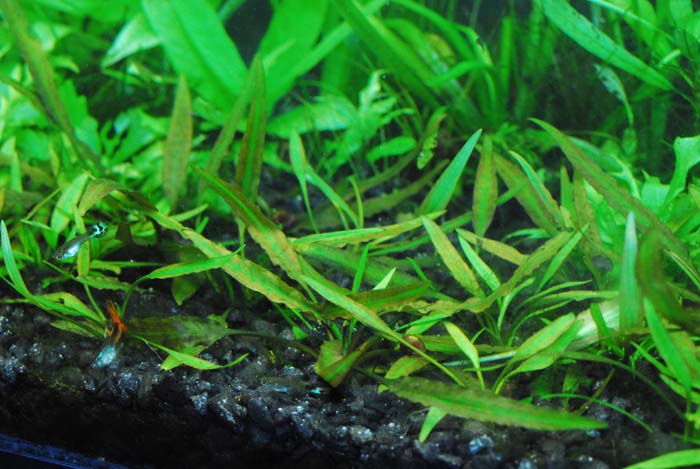 Even though most swords are medium sized to large the genus does include the very popular and easy to grow carpeting plant the pygmy chain sword, E. tenellus. This is one of my favorite easy to grow carpeting plants that is one of the few that can almost always be used successfully in a low tech planted tank. It makes a nice low grass like carpet across your tank. There is a narrow, broad leafed and red variety of pygmy chain sword sometimes available.