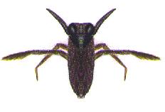Water Treaders are similar animals but smaller. Often green, the animals live in thick vegetation feedign on other animals near the surface. There are 3 species in North America.